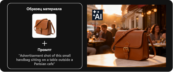 Загружайте изображения продуктов, персонажей или объектов и создавайте профессиональные визуалы по текстовому описанию.